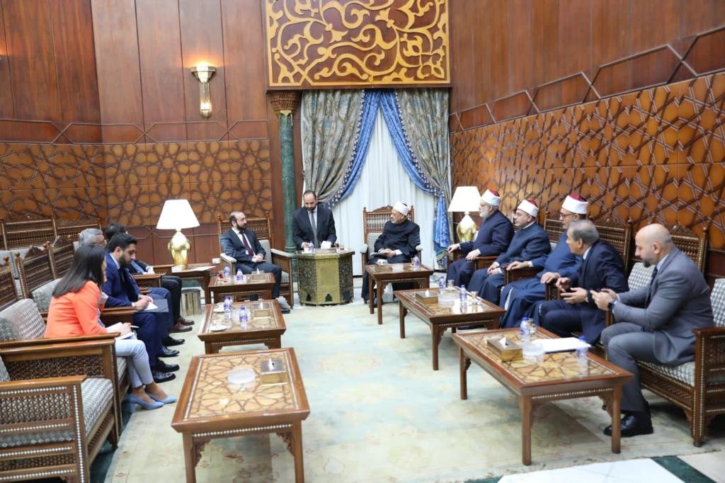 ورحب فضيلةُ الإمام الأكبر وعلماءُ الأزهر بوزير خارجية أرمينيا والوفد الرسمي المرافق له في رحاب الأزهر الشريف، مؤكدًا حرص الأزهر على تعزيز التعاون العلمي والثقافي مع أرمينيا انطلاقًا من العلاقات التاريخية بين مصر وأرمينيا ودور الأزهر في نشر سماحة الإسلام وقيمه التي تدعو للسلام والتعايش بين الناس على اختلاف معتقداتهم وثقافاتهم.