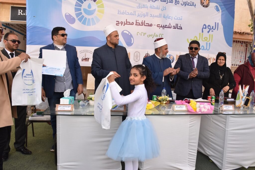 ومن جانبها وجهت الدكتورة دينا عثمان ، نائب محافظ مطروح الشكر لكل من ساهم وشارك من الوزارات والمديريات في حملة التوعية خلال احتفالات المحافظة باليوم العالمي للمياه ، مشيده بجهود الدولة واهتمامها بتوعية المواطنين بالقضايا المُتعلّقة بالمياه وتثقيفهم بها وتشجيعهم على اتخاذ جميع الإجراءات التي يُمكن أن تُحدث فرقاً وتغييراً في تلك القضايا.