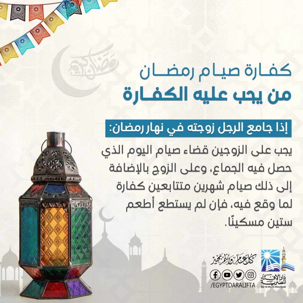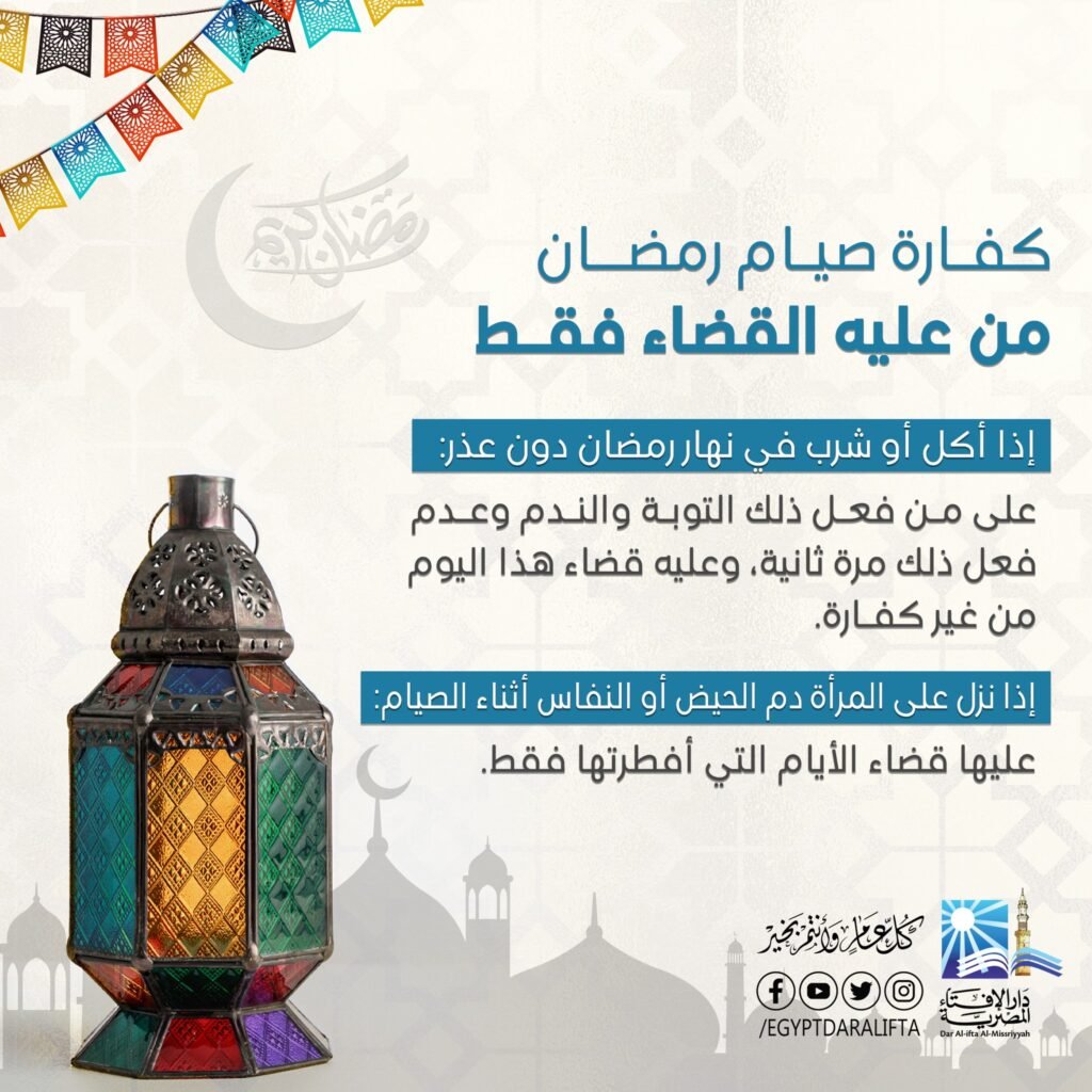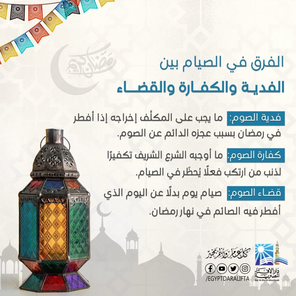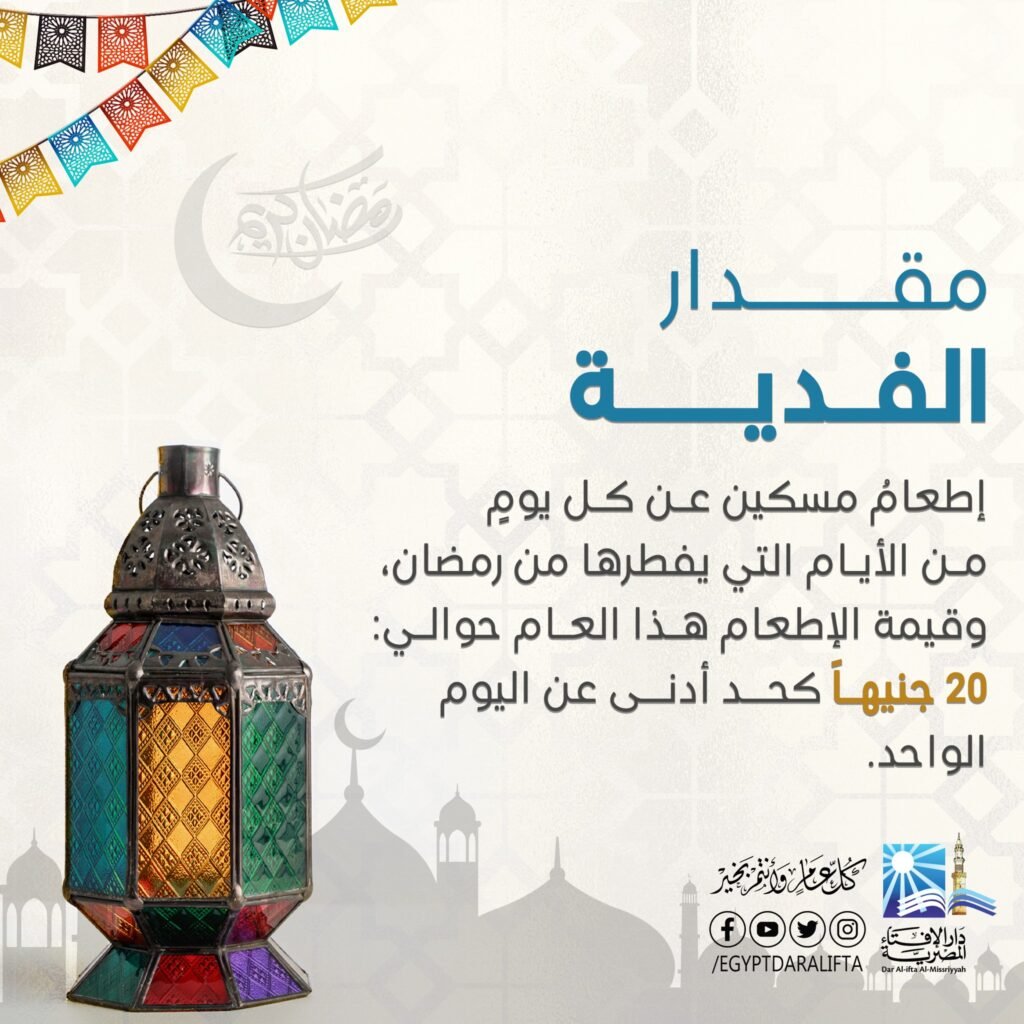 حددت دار الإفتاء المصرية قيمة كفارة الصيام لمن لا يستطيع الصوم بقية حياته بالحد الأدنى 20 جنيها عن اليوم الواحد، مشددة على أن من يستطيع الصوم بعد انقضاء العذر عليه القضاء بعدد الأيام التى أفطرها، سواء كان ذلك لمرض يرجى شفاؤه أو لحمل أو رضاعة أو غير ذلك، وبينت الدار الحالات التى يلزم فيها القضاء، مشيرة إلى أن القضاء: هو صيام يوم بدلا عن اليوم الذي أفطر فيه الصائم في نهار رمضان، وأوضحت ذلك من خلال الانفوجراف التالي: