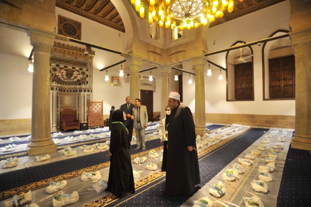 حرص قيادات الأزهر والعاملون بالجامع الأزهر على رفع كفاءة وسير العمل في الإفطار الجماعي الذي ينظمه الجامع للطلاب الوافدين بواقع 4000 وجبة يوميًّا، على مدار شهر رمضان المبارك، ونظم القائمون على الإفطار الوجبات في صفوف منتظمة لتسهيل وتنظيم إفطار الطلاب في صحن الجامع.