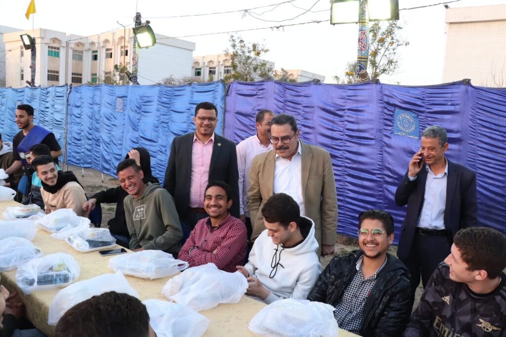 شارك الدكتور محمد الشربيني نائب رئيس الجامعة لشئون التعليم والطلاب ، وعدد من الأمناء المساعدين والمديرين العموم ؛ الإفطار الجماعي مع الطلاب المغتربين غير المقيمين بالمدن الجامعية الذي يشرف عليه الإدارة العامة لرعاية الطلاب، بالتعاون مع فريق طلاب من أجل مصر.
