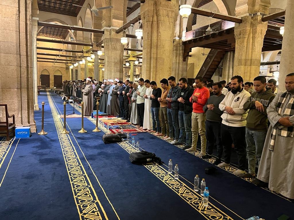 امتلأت أروقة وصحن الجامع الأزهر بآلاف المصلين في صلاتي العشاء والتراويح، في اليوم الخامس عشر من شهر رمضان المبارك، رُكعًا سُجدًا يبتغون فضلًا من الله ورضوانًا، يلهجون إليه بالدعوات، ويطلبون الدرجات العلى وأن يغفر الله لهم الخطايا والذنوب، وأن يتقبل منهم الصلاة والصيان والقيام، وقد كان رسول الله ﷺ وأصحابه يفرحون بقدوم رمضان وكانوا يسألون الله قبل بستة أشهر أن يبلغهم رمضان، وكان ﷺ أجود ما يكون في رمضان، وكان وصحابته الكرام يتقربون إلى الله بالصيام والقيام والطاعات.