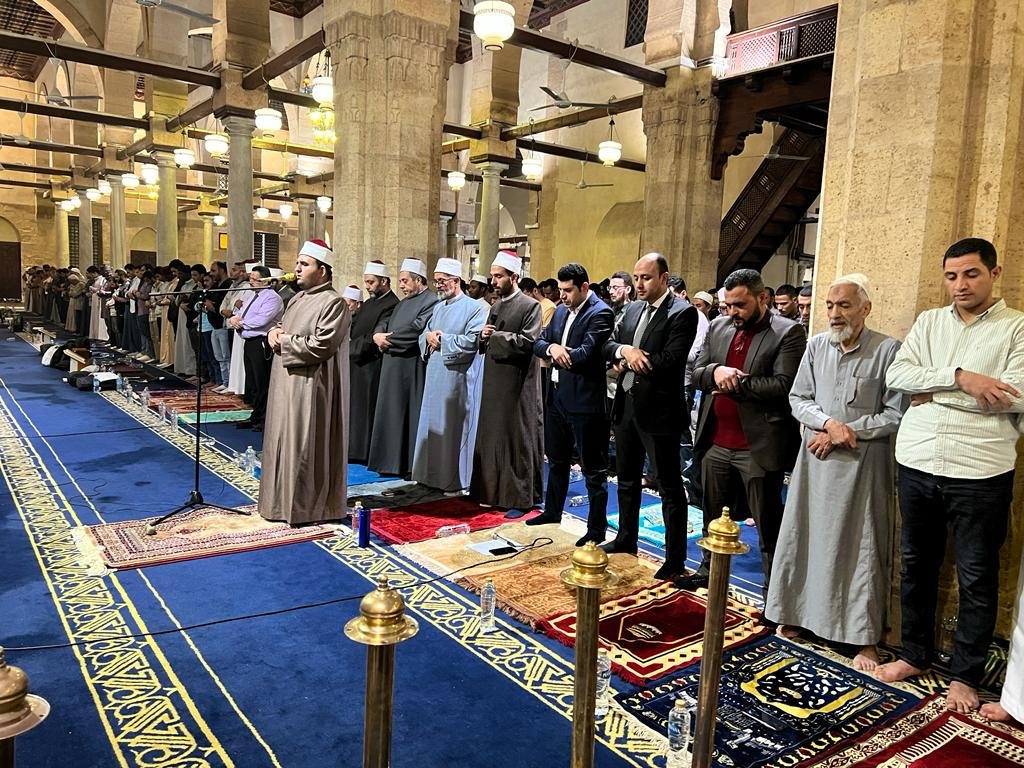 بروايات خلف وابن كثير وقالون.. آلاف المصلين يؤدون العشاء والتراويح بالجامع الأزهر
