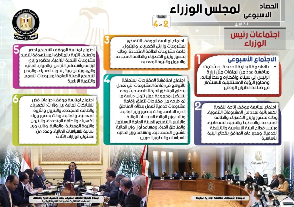 بالإنفوجراف.. ننشر الحصاد الأسبوعي لأنشطة مجلس الوزراء