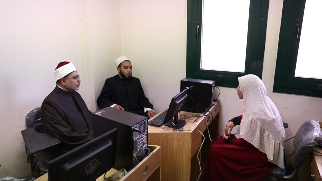 في إطار متابعته الدائمة والمستمرة لمنظمومة الامتحانات الشفهية في القرآن الكريم الموثقة بأجهزة الحاسب الآلي بمختلف كليات جامعة الأزهر بالقاهرة والأقاليم؛ قام فضيلة الدكتور سلامة داود، رئيس الجامعة، يرافقه الدكتور محمود صديق، نائب رئيس الجامعة للدراسات العليا والبحوث، والدكتور محمد فكري خضر، نائب رئيس الجامعة لفرع البنات؛ بتفقد لجان الامتحانات الشفهية في القرآن الكريم بمقر كلية التمريض جامعة الأزهر بالقاهرة.