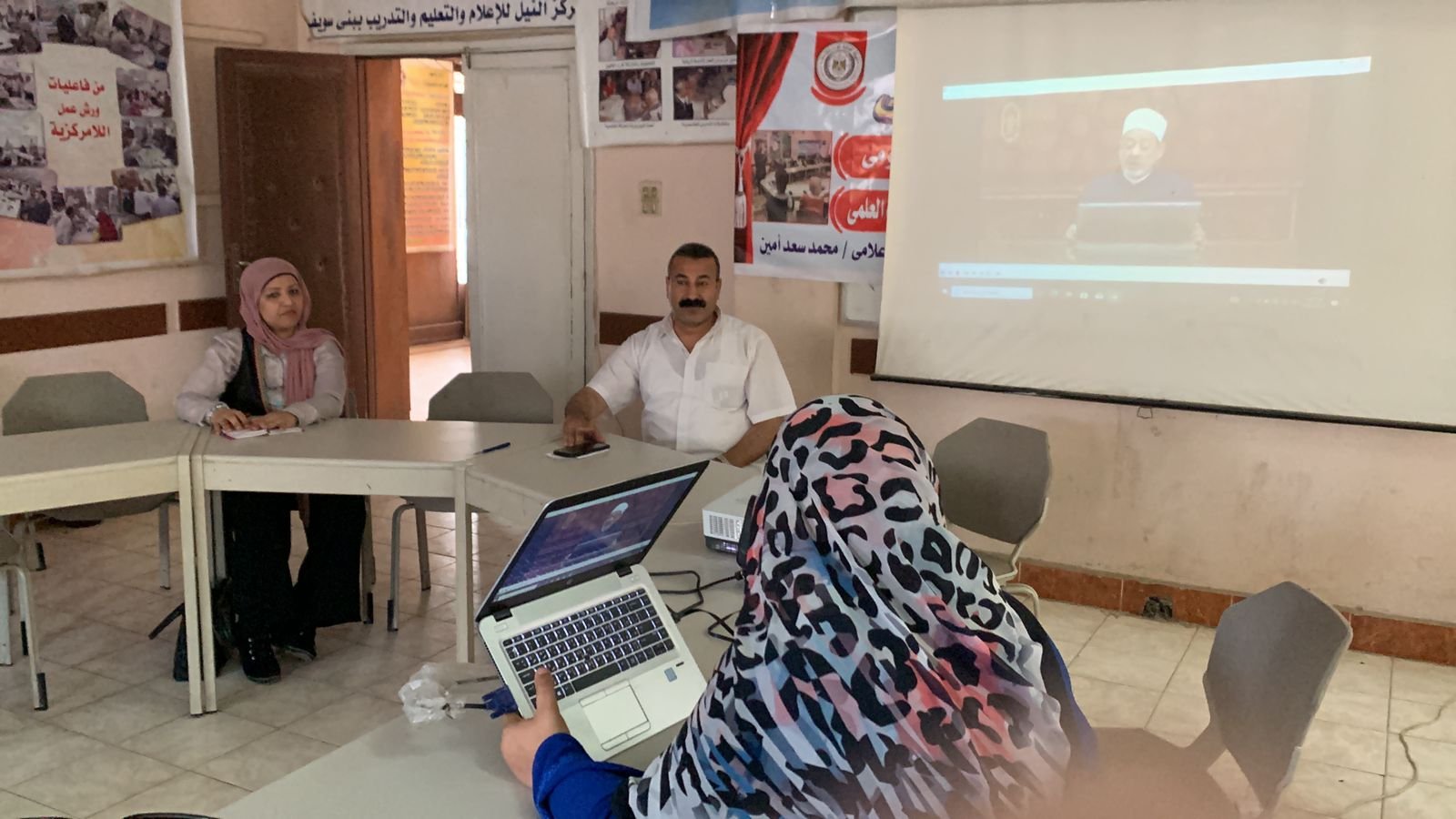 بحضور الأستاذ محمد سعد مدير اعلام شمال الصعيد والاستاذة اماني محمد اخصائي إعلام والاستاذة هاله سيد مسؤول المنظمة العالمية لخريجي الأزهر الشريف والاستاذة أية احمد جنيدي منظمة خريجي الأزهر وفريق عمل المنظمة العالمية لخريجي الأزهر الشريف