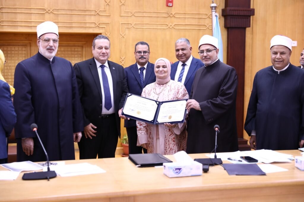 وقام رئيس الهيئة بتسليم الشهادات للسادة العمداء: الدكتور عبدالفتاح خضر، عميد كلية القرآن الكريم، والدكتور نبيل زاهر، عميد كلية أصول الدين والدعوة المنصورة، والدكتور عادل طنطاوي، عميد كلية اللغة العربية المنصورة، والدكتور محمد البيومي، عميد كلية أصول الدين الزقازيق، والدكتور أحمد حسين، عميد كلية الدعوة بالقاهرة، والدكتورة شفيقة الشهاوي، عميدة كلية الدراسات الإسلامية والعربية للبنات بالقاهرة، والدكتور محمد مهنى، عميد كلية الهندسة بنين.
