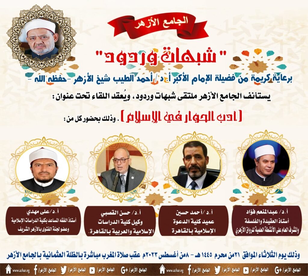 اليوم.. الجامع الأزهر يستعرض أدب الحوار في الإسلام بملتقى شبهات وردود يواصل ملتقى “شبهات وردود”