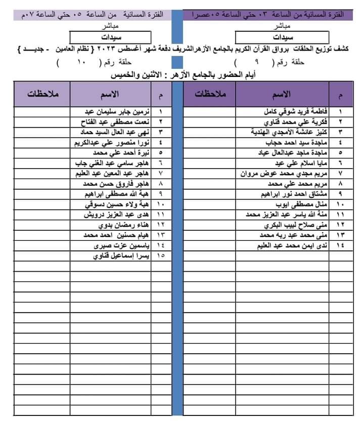 تنطلق غدًا، الاثنين، الدراسة برواق القرآن الكريم للكبار (نظام العامين)؛ حيث يبلغ عدد الدارسين المقيدين حوالي 1000 دارس برواق الكبار، و500 برواق الطفل .