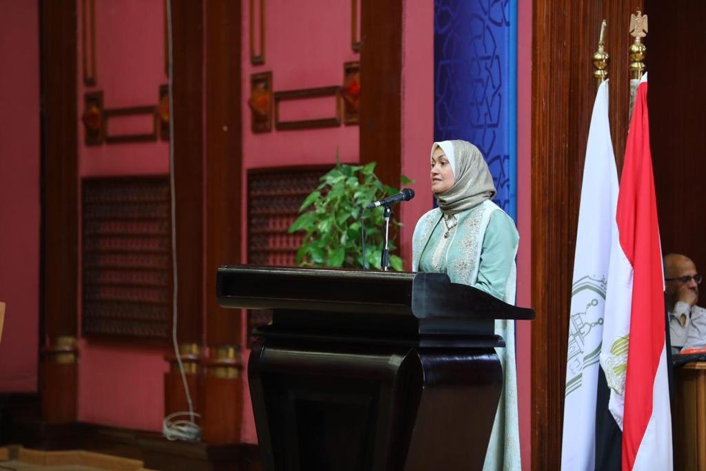ووجهت الصعيدي نداء خاصا للطلاب الوافدين بالأزهر، قائلة “أبذلوا ما في وسعكم وجهدكم ونوعوا فكركم وشكلوا معارفكم، فمن كانت بدايته محرقة كانت نهايته مشرقة، خذوا العلم من العلماء المشهود لهم بالمكانة العلمية والمعروفين بالعدالة في أمور الشريعة والحياة”.