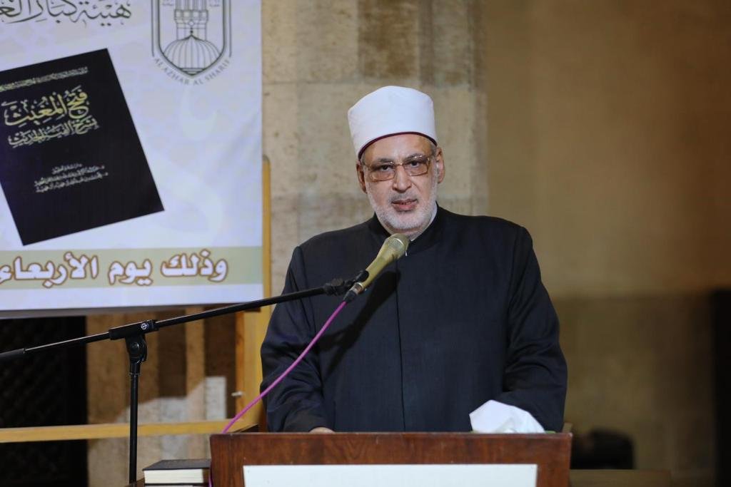 وأضاف وكيل الأزهر خلال كلمته في فعاليات المجلس الحديثي بالجامع الأزهر لختم كتاب «فتح المغيث» بعد شرح استمر 10 سنوات، أن علم الحديث من العلوم التي أنتجها العقل المسلم لتوثيق النقول، والتثبت من الأخبار؛ إعمالا لقول الله تعالى: { يا أيها الذين آمنوا إن جاءكم فاسق بنبإ فتبينوا أن تصيبوا قوما بجهالة فتصبحوا على ما فعلتم نادمين } [الحجرات: 6]، ويأتي هذا الكتاب لبنة في هذا الصرح الشامخ الذي شيده جهابذة النقاد من علماء الحديث الشريف، وهو كتاب جرت عادة المحدثين على قراءته ومدارسته في أروقة العلم، وجامعاته في الدنيا شرقا وغربا.