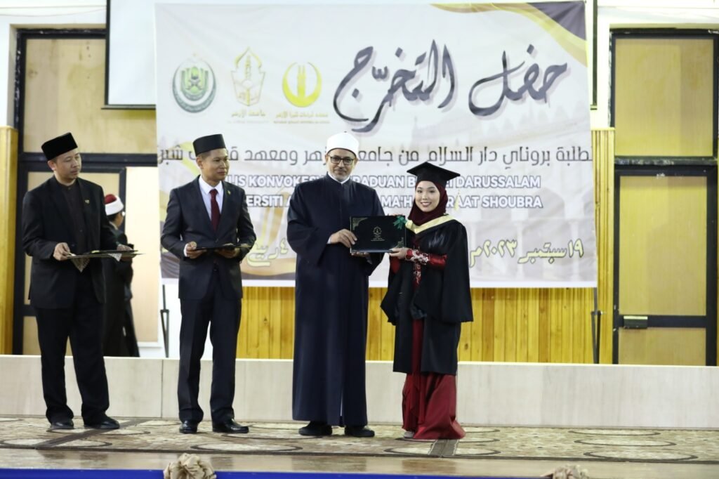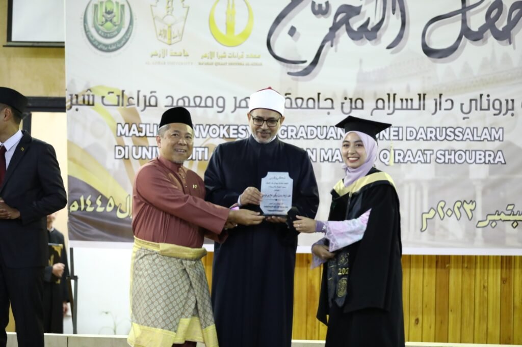 ورحب رئيس جامعة الأزهر بالحضور جميعًا في الاحتفالية خاصة الحاضرين من أسر الخريجين والخريجات الذين جاؤوا من سلطنة بروناي دار السلام؛ ليشهدوا تخرج أبنائهم في جامعة الأزهر.