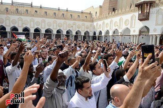 وردد المواطنين داخل وخارج المسجد هتافات لدعم الشعب الفلسطيني والمسجد الأقصى من بينها “بالروح بالدم.. نفديكَ يا أقصي”، كما رفعوا الأعلام الفلسطينية منددين بجرائم الاحتلال الإسرائيلى وقتل المدنيين قطاع غزة، وتدمير المبانى ومختلف المؤسسات فى فلسطين، وكانت الوقف وسط تواجد الكثير من الطلاب الوافدين الدارسين بالأزهر الشريف.
