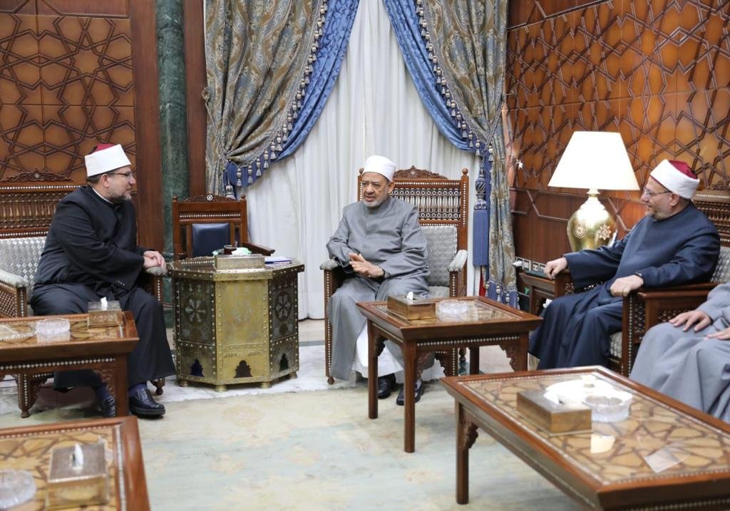 من جانبه، رحب فضيلة الإمام الأكبر د.أحمد الطيب، شيخ الأزهر الشريف، بالدكتور محمد مختار جمعة، و د.شوقي علام، والوفد المرافق لهما، مؤكدا أن القضية الفلسطينية هي القضية المحورية الأهم للمسلمين، وأن الأزهر لن يتوانى في التصدر للدفاع عن الشعب الفلسطيني، وفضح ما يتعرض له من تنكيل وظلم ومذابح ومجازر، وما يمارسه الكيان الصهيوني المحتل من اختراقات لكل المواثيق الدولية والإنسانية والأخلاقية.
