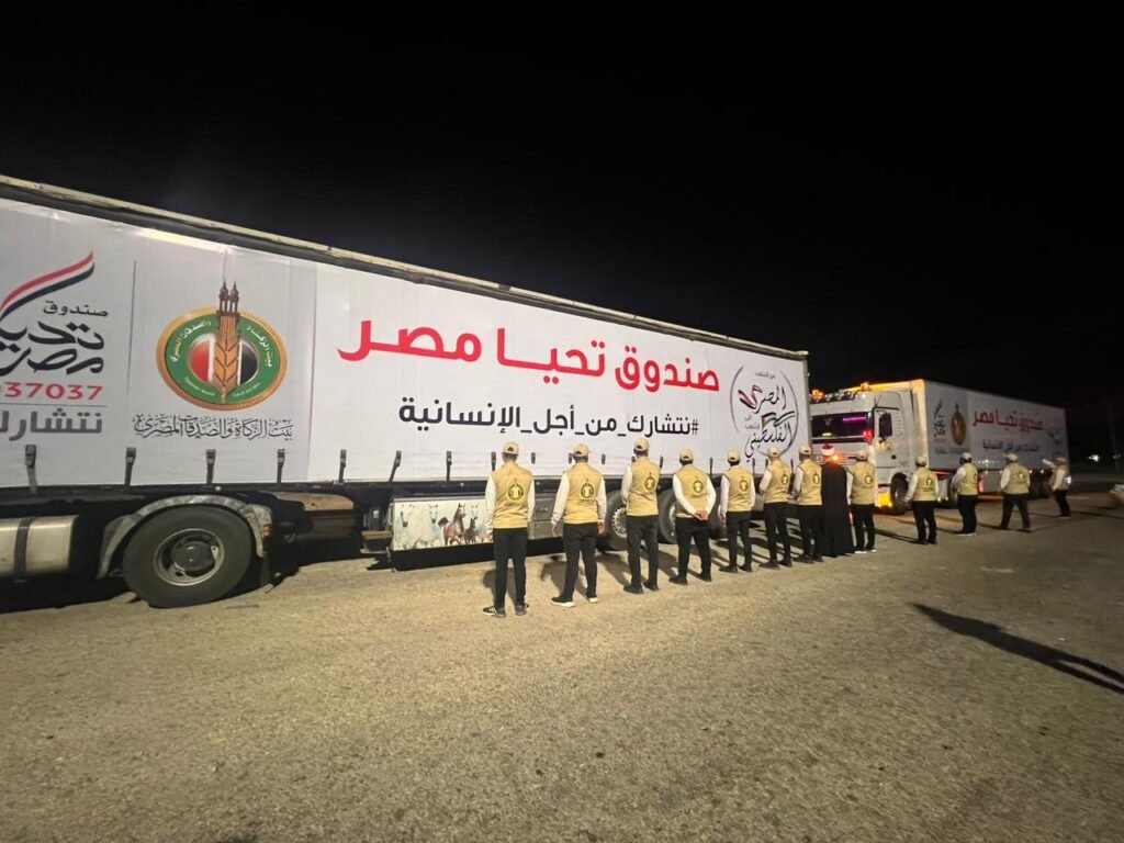 وصول أكبر قافلة مساعدات من بيت الزكاة والصدقات المصري إلى معبر رفح
