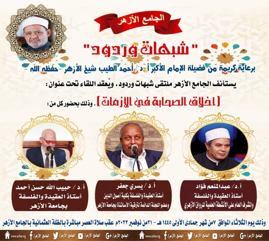 أخلاقيات الصحابة في الأزمات.. “الجامع الأزهر” يعقد ملتقى شبهات وردود الثلاثاء