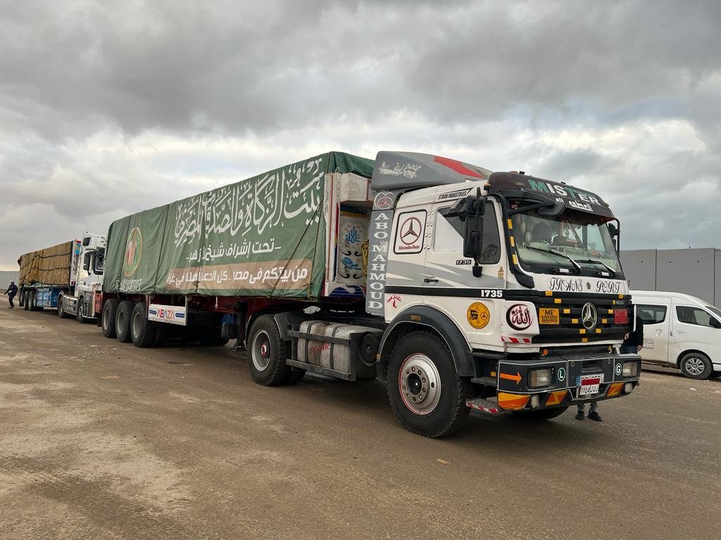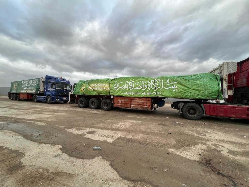 بتوجيهات شيخ الأزهر.. القافلة الثالثة لبيت الزكاة تعبر ميناء رفح البري دعمًا لغزة