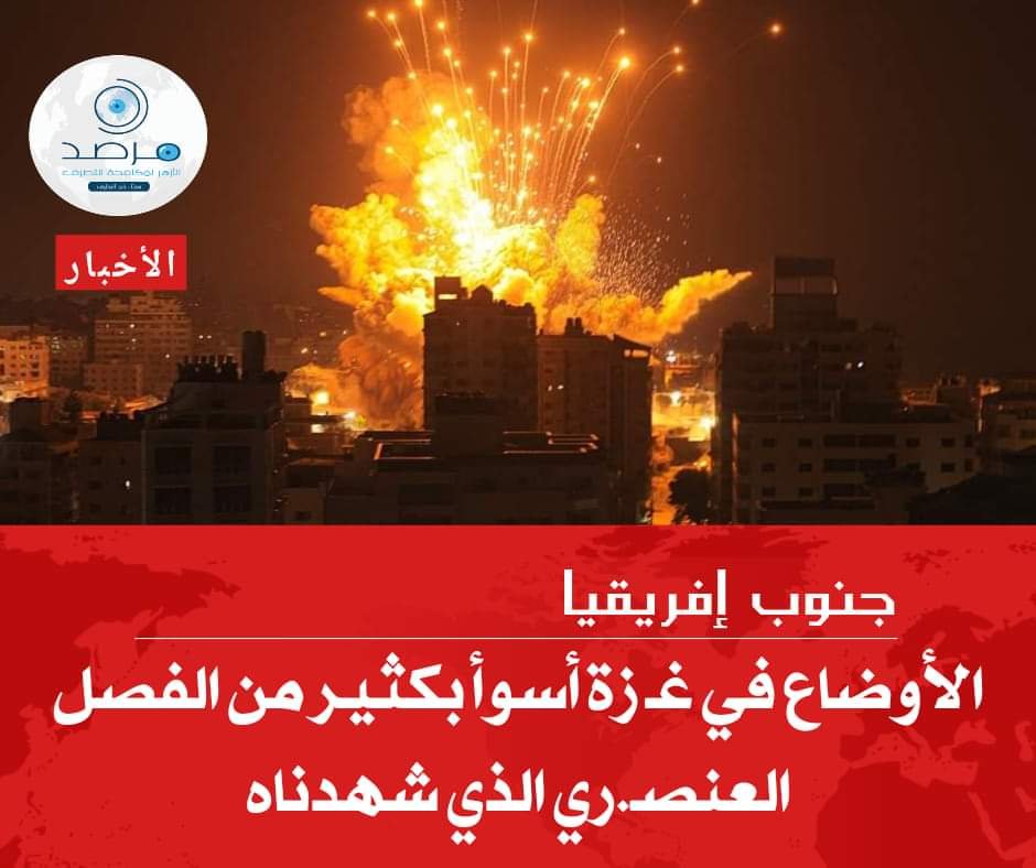 في هذا الشأن، يشدد مرصدالأزهر لمكافحة التطرف على أن وصف جنوب إفريقيا للأوضاع في قطاع غزة هو أقل ما يمكن إطلاقه على الجرائم الوحشية التي ترتكب على الأرض بحق الأبرياء من الأطفال والنساء والمرضى والمدنيين العزل ويثني “المرصد” على الموقف الإنساني والحقوقي لجنوب إفريقيا تجاه الحق الفلسطيني والتنديد بالأفعال الإرهابية التي يمارسها الاحتلال.