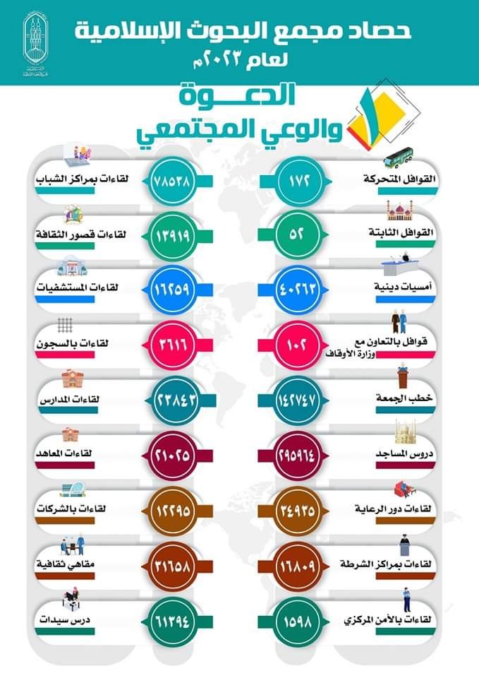 وتابع عيَّاد قائلًا: إن جهود التوعية خلال هذا العام شهدت أيضًا تنفيذ نحو 40263 أمسية دينية في أماكن متنوعة تواجد فيها الجمهور بشرائحه المختلفة واهتماماته المتنوعة، كما أن الدور المتخصصة للسيدات كان لها اهتمام خاص حيث بلغت لقاءات السيدات نحو 61394 لقاء.