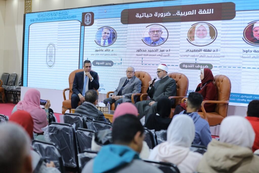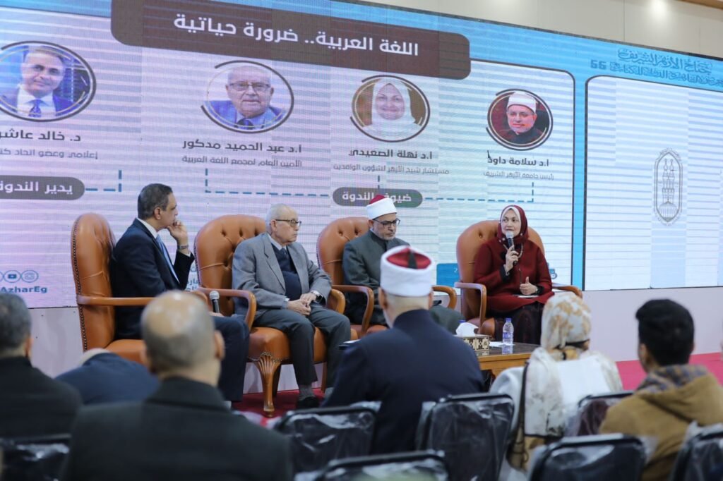 جناح الأزهر بمعرض الكتاب يناقش مشكلات “اللغة العربية” ويطالب جامعة الدول العربية بوضع قوانين ملزمة لتفعيل استخدام “العربية” في المجتمع وحقول العمل المختلفة