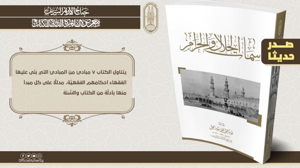 - كتاب “سمات الحلال والحرام”، بقلم شيخ الأزهر الأسبق جاد الحق علي جاد الحق، يتناول ٧ مبادئ من المبادئ التي بنَى عليها الفقهاء أحكامَهم الفقهيَّة، مدللًا على كل مبدأ منها بأدلَّة من الكتاب والسُّنة.