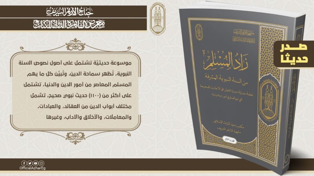 - كتاب “زاد المسلم من السنة النبوية المشرفة”، من إعداد مكتب إحياء التراث الإسلامي بمشيخة الأزهر، وتعد موسوعة حديثية تشتمل على أصول نصوص السنة النبوية؛ تدفع عنها افتراء المفترين، وتُظهر سماحة الدين، وتُبيِّن كل ما يهم المسلم المعاصر من أمور الدين والدنيا، تشتمل على أكثر من (1100) حديث نبوي صحيح، تشمل مختلف أبواب الدين من العقائد، والعبادات، والمعاملات، والأخلاق والآداب، وغيرها.