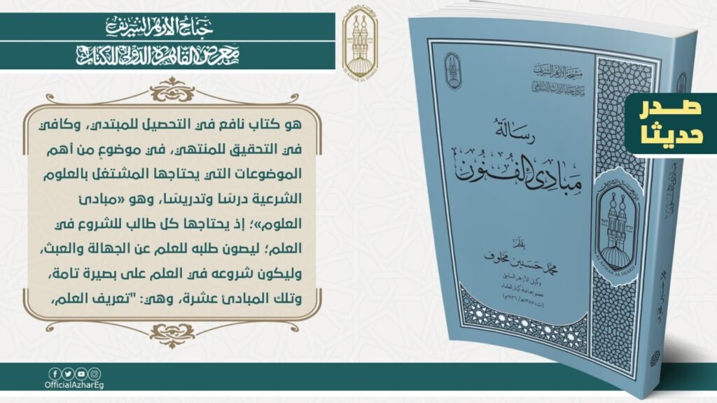 - كتاب «مبادئ الفنون»، لمحمد بن حسنين مخلوف، وكيل الأزهر الأسبق، وهو كتاب نافع في التحصيل للمبتدي، وكافي في التحقيق للمنتهي، في موضوعٍ من أهم الموضوعات التي يحتاجها المشتغل بالعلوم الشرعية درسًا وتدريسًا، وهو «مبادئ العلوم»؛ إذ يحتاجها كل طالب للشروع في العلم؛ ليصون طلبه للعلم عن الجهالة والعبث، وليكون شروعه في العلم على بصيرة تامة، وتلك المبادئ عشرة، وهي: “تعريف العلم، وموضوعه، وفائدته، ومسائله، وشرفه ومرتبته، واسمه، ونسبته، ومعرفة واضعه، ومعرفة طرق استمداده، ومعرفة حكم تعلمه”.