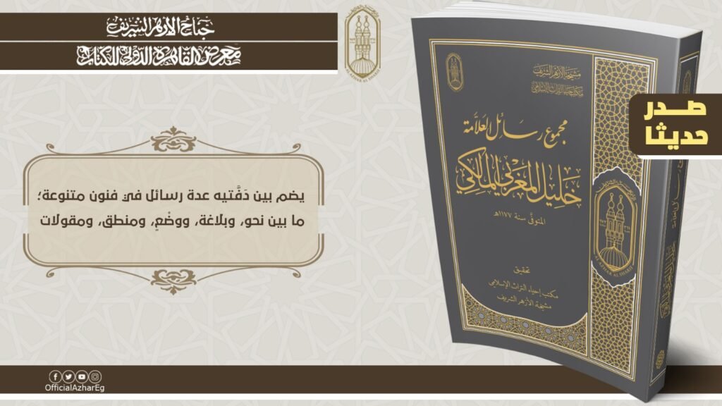 - كتاب “مجموع رسائل العلامة خليل المغربي المالكي”، ويضم بين دَفَّتيه عدة رسائل في فنون متنوعة؛ ما بين نحو، وبلاغة، ووضْعٍ، ومنطق، ومقولات، وحديث.