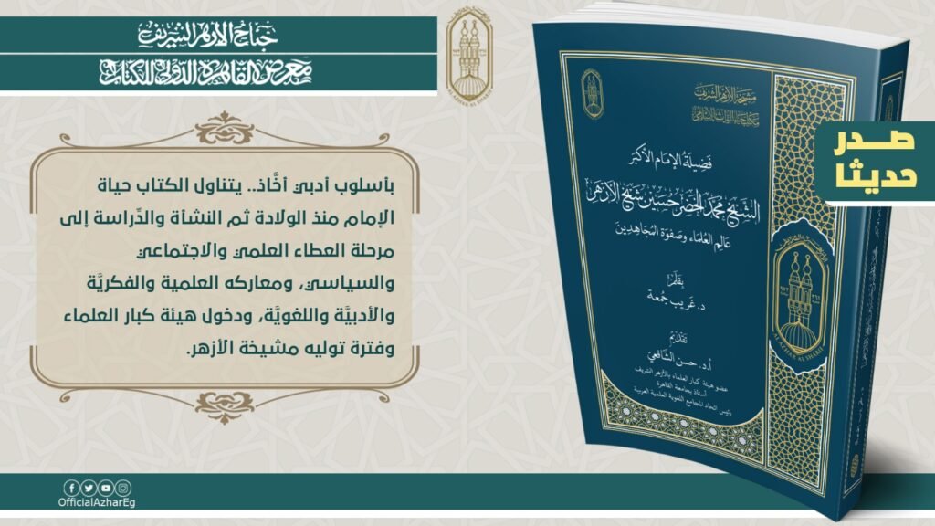 - كتاب “فضيلة الإمام الأكبر محمد الخضر حسين شيخ الأزهر”، بقلم د. غريب جمعة، يتناول حياة الخضر حسين منذ الولادة ثم النشأة والدراسة إلى مرحلة العطاء العلمي والاجتماعي والسياسي، ومعاركه العلمية والفكرية والأدبية واللغوية، ودخوله هيئة كبار العلماء وفترة توليه مشيخة الأزهر.