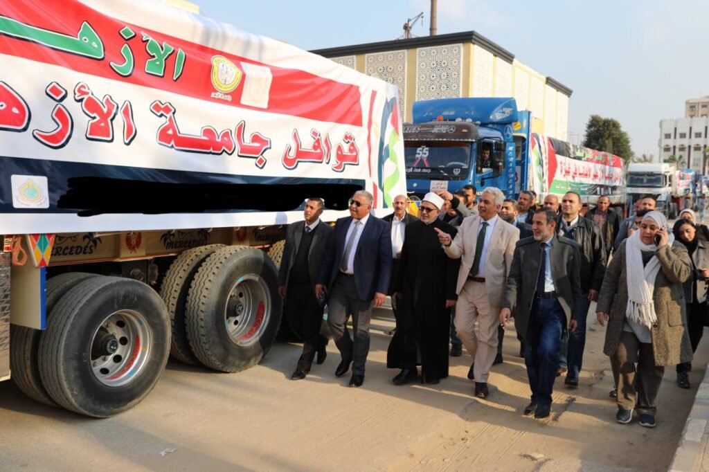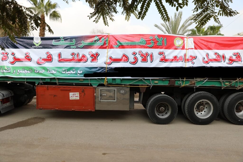 جامعة الأزهر تطلق قافلة المساعدات الإنسانية الثالثة دعمًا لأهالي غزة
