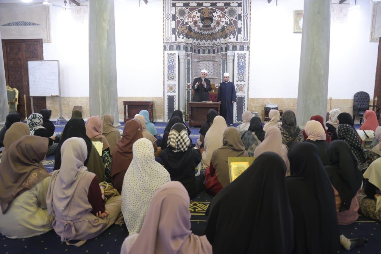وتناول الشيخ إمام علي، رئيس قسم التجويد والقراءات بالجامع الأزهر، في المقرأة حكم الاستعاذة وصيغها وأحوالها من حيث الجهر والإسرار وأوجهها، واختتم ببيان حكم الاستعاذة بعد قطع القراءة، ثم قام بتدريب الطالبات على ما تم شرحه لهن.