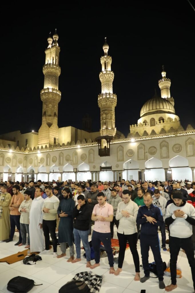شهد آلاف المصلين اليوم السبت، صلاتي العشاء والتراويح في الجامع الأزهر، في الليلة الحادية والعشرين من شهر رمضان الفضيل، وقد جاؤوا من مختلِف محافظات الجمهورية، كما يحضر إلى الجامع الطلاب الوافدون بالأزهر من أكثر من مئة دولة، وتؤدى صلاتي العشاء والتراويح بالجامع الأزهر بالقراءات العشر، ويؤمها نخبة من قرّاء القرآن الكريم في الأزهر، ويقوم المركز الإعلامي للأزهر بنقل الصلاة مباشرة على صفحات ومنصات الأزهر على مواقع التواصل الاجتماعي وصفحة الجامع الأزهر، مع التغطية الإعلامية لكل فعاليات الجامع خلال شهر رمضان.