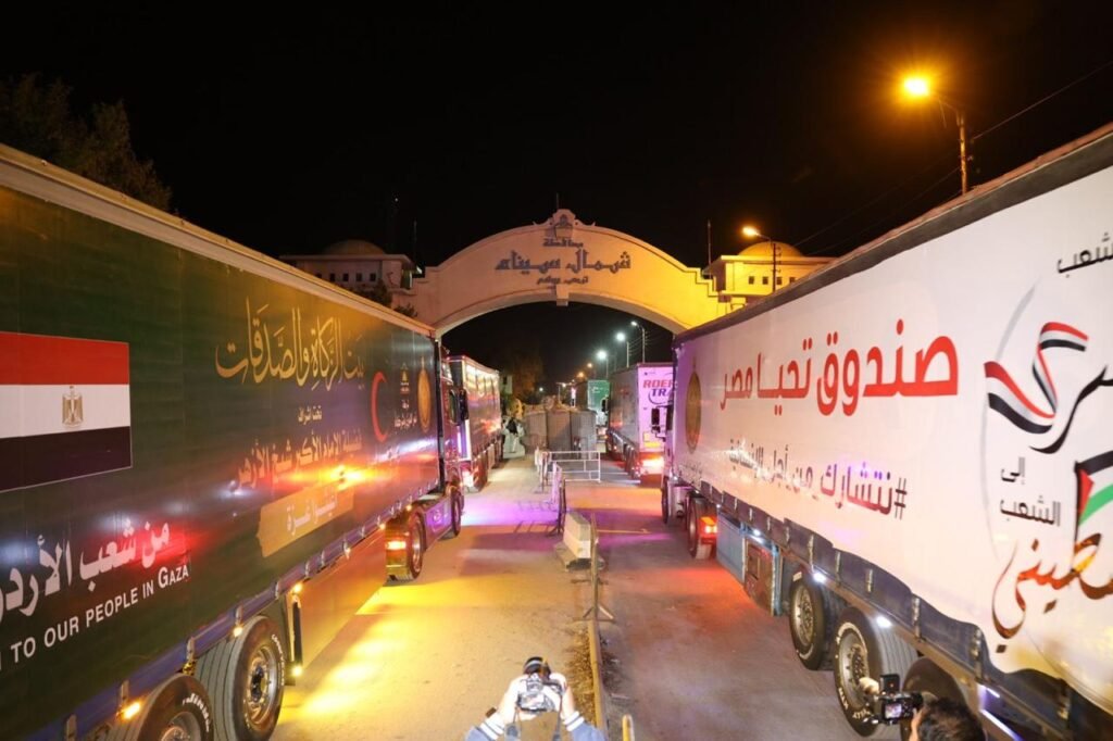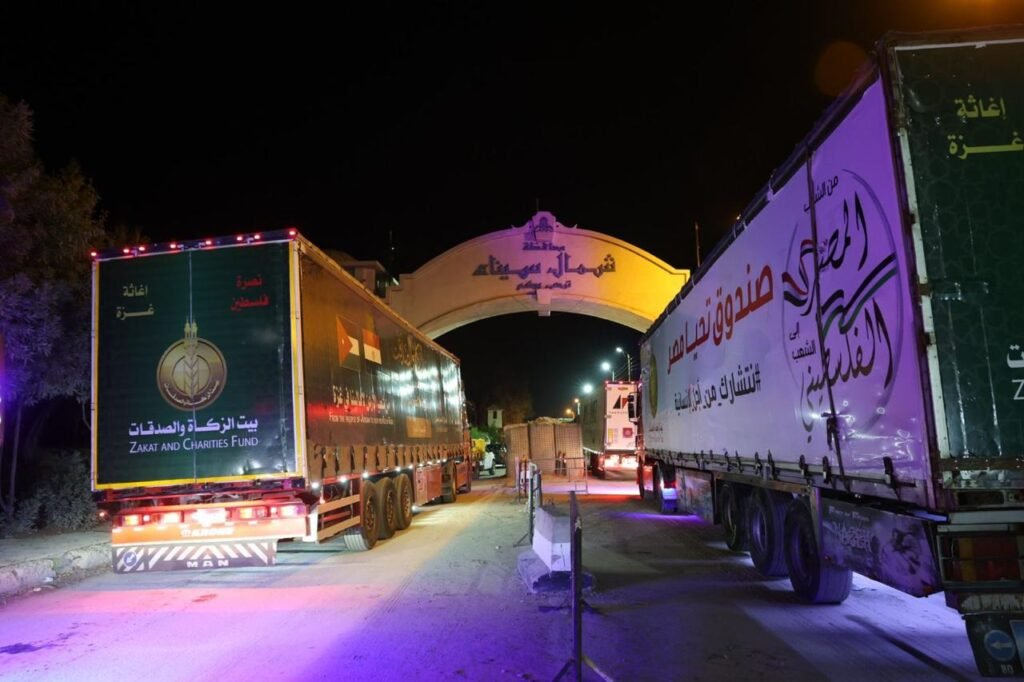 تمهيدًا لدخولها غزة.. وصول القافلة السادسة لبيت الزكاة والصَّدقات المصري إلى معبر رفح البري