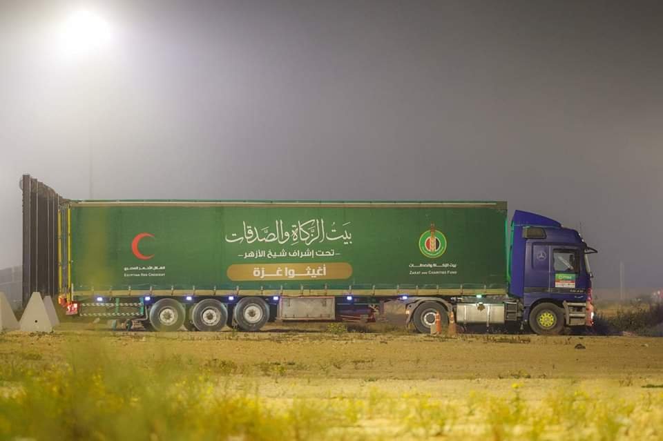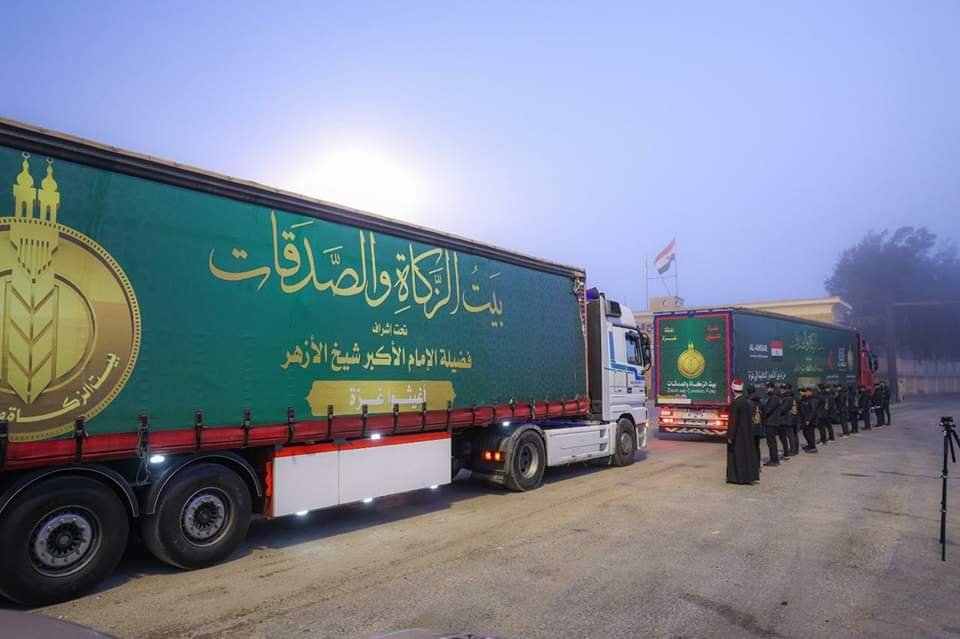 بتوجيهات من فضيلة الإمام الأكبر أحمد الطيب، شيخ الأزهر، عبرت القافلة السادسة لبيت الزكاة والصدقات، ميناء رفح البري، صباح اليوم، للتخفيف من معاناة أشقائنا قبل حلول عيد الفطر المبارك.