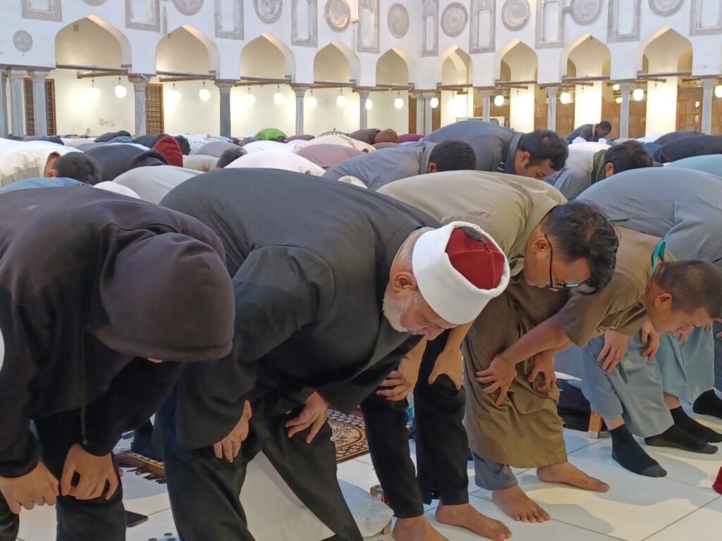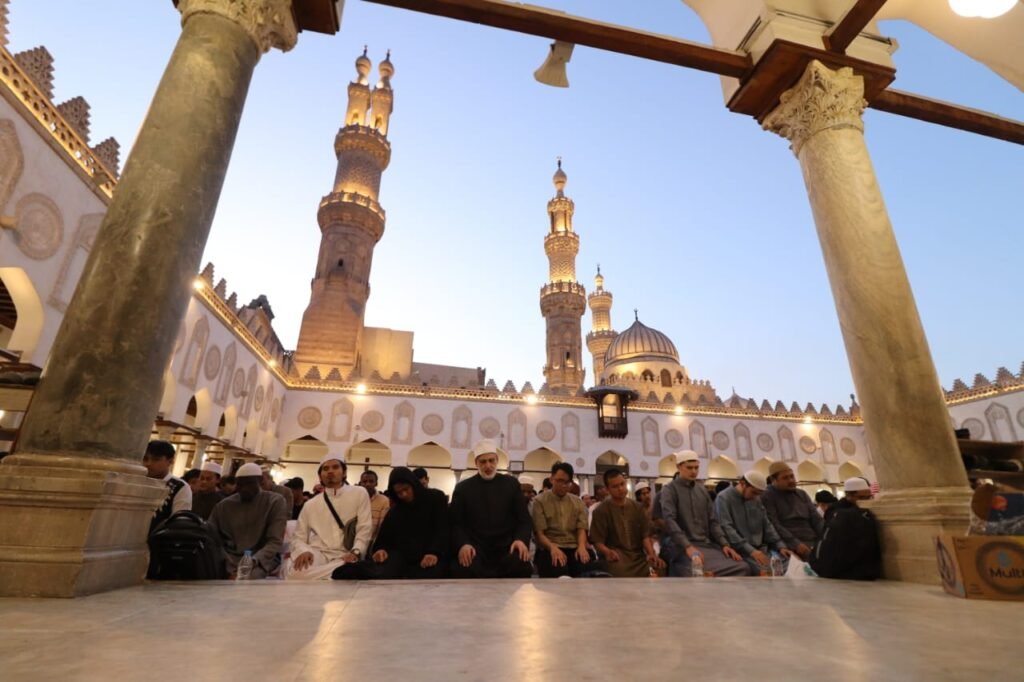 الضويني يصطف للصلاة مع الوافدين في صحن الجامع الأزهر