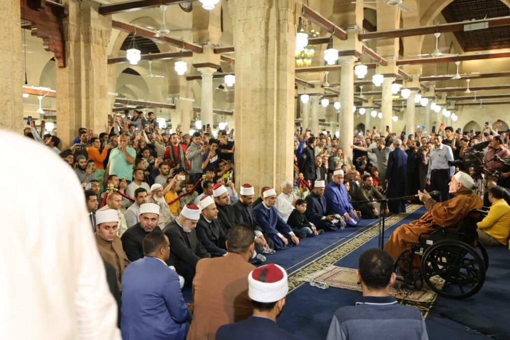وأكد فضيلته أن الأمة في ليلة السلام تتطلع إليه اليوم، السلام الذي وعد الله في كتابه العزيز، وفي هذه الليلة العظيمة ليلة القدر، رافعا يديه داعيا يجأر إلى الله والحاضرون خلفه يؤمنون: “نجأر إليك يا رب أرض الإسراء، من أزهرنا الشريف، أن يعم السلام والأمن أشقائنا في فلسطين وغزة” مضيفا أن الليلة ليلة النور، ونحن في قلعة النور، قلعة الجامع الأزهر، الذي سعد بأئمة شوامخ، وأولياء من عباد الله الصالحين، متبركين بالجلوس فيه، ضارعين إلى رب العزة بالقرآن الذي أنزله في هذه الليلة أن يتقبل الدعاء.