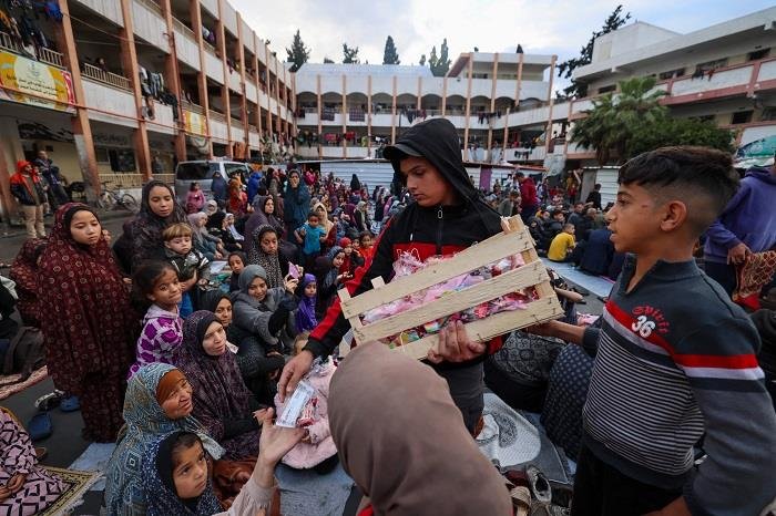 وفي مخيم جباليا شمال القطاع، أدى المواطنون الصلاة في الساحات العامة وسط هطول الأمطار والأجواء الباردة. وحاولت مؤسسات إغاثية إدخال البهجة على الأطفال بتوزيع الحلوى والألعاب عليهم.