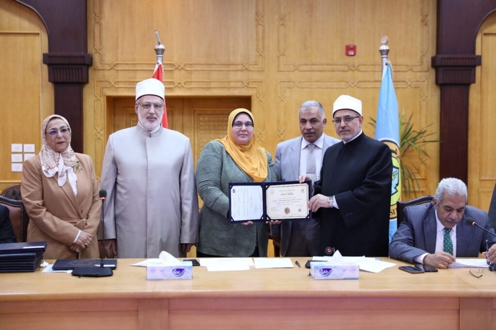 وقامت الدكتوره راجية طه، نائب رئيس مجلس إدارة الهيئة القومية لضمان جودة التعليم والاعتماد للتعليم الأزهري، بتسليم عمداء الكليات المعتمدة شهادات الاعتماد خلال مجلس الجامعة.