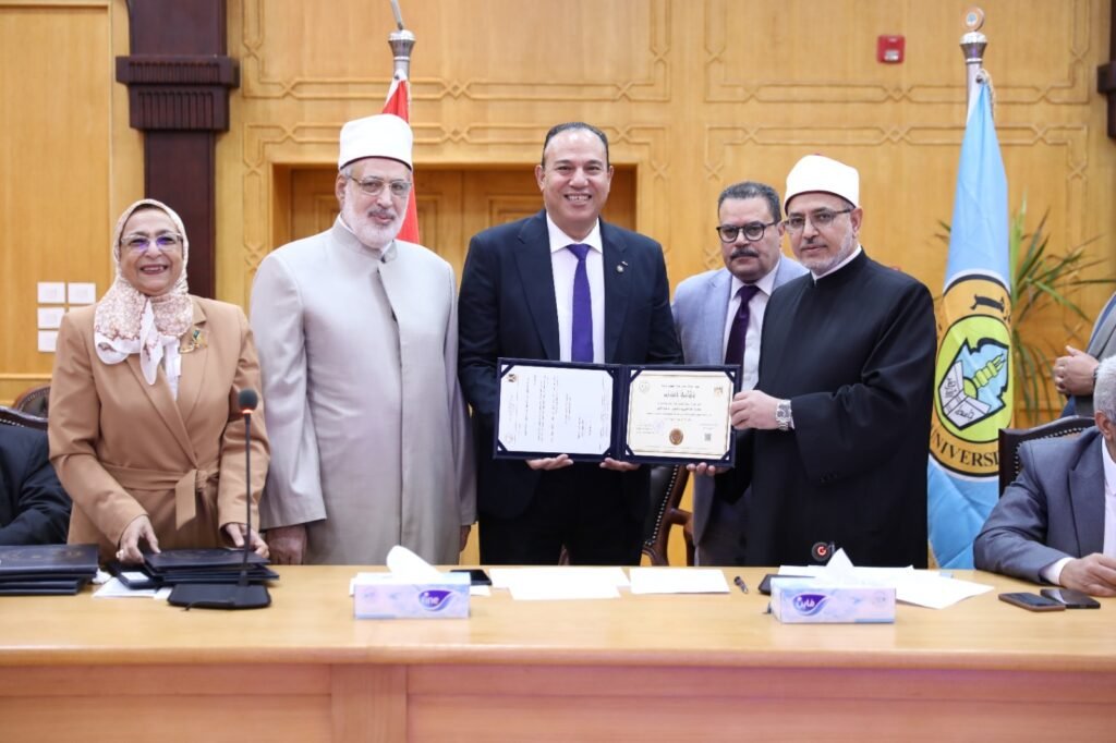 وعلوم أسيوط تمنح رئيس الجامعة درع الملتقى التوظيفي