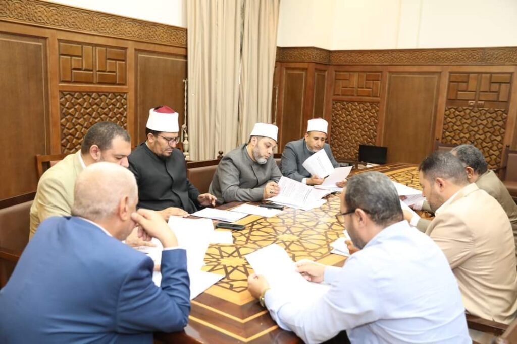بتوجيهات من فضيلة أ.د عباس شومان الأمين العام لهيئة كبار العلماء بالأزهر الشريف انعقدت اليوم الثلاثاء٧ ربيع الأول ١٤٤٦ هـ الموافق 10 سبتمبر 2024 م. لجنة الدراسات الفقهية المعاونة برئاسة فضيلته وذلك بمقر هيئة كبار العلماء بالأزهر الشريف بحضور عددٍ من علماء الأزهر الشريف منهم أ.د علي حسين مقرر اللجنة، وأ.د علي مهدي أمين سر هيئة كبار العلماء ود. أبو اليزيد سلامة، منسق اللجنة ومدير عام الإدارة العامة لشئون القرآن الكريم بالأزهر، وأ.د/ يحيى أبو بكر وأ.د/ أحمد خيري، ود/ محمد صلاح، د/ محمود حلمي علي، كما حضر الاجتماع اليوم فضيلة الدكتور أحمد همام، مدير عام شئون الهيئة وناقشت اللجنة عددًا من القضايا الشرعية والفقهية الصادرة من صميم الواقع وعرضت عددًا من بحوث أعضائها التي تعالج كثيرًا مما يحمله العصر من مستجدات وتطورات مع مراعاة مقاصد الشريعة الإسلامية، ومعالجة ما يحل بالناس من الملمات والمعضلات.