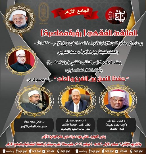 ينطلق الملتقى الفقهي الأول «رؤية معاصرة» بالجامع الأزهر، غدًا الاثنين، تحت عنوان “حفظ النسل بين الشرع والطب”، وتحمل في طياتها رؤية شاملة تتناول القضايا المعاصرة، وتقديم رؤى متكاملة تجمع بين الشريعة الإسلامية والطب الحديث، بحضور د. عباس شومان رئيس المنظمة العالمية لخريجي الأزهر، الأمين العام لهيئة كبار العلماء، ود. محمود صديق نائب رئيس جامعة الأزهر للدراسات العليا والبحوث، وسيقوم د. هاني عودة مدير عام الجامع الأزهر، بإدارة الحوار وتوجيه الأسئلة، مما يتيح الفرصة للحضور للتفاعل ومشاركة آرائهم، ويستعرض الملتقى الآراء الفقهية المتعلقة بحفظ النسل وأهميته في الإسلام.