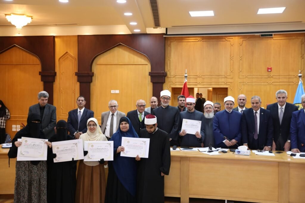 كرَّم مجلس جامعة الأزهر برئاسة فضيلة الدكتور سلامة جمعة داود، رئيس الجامعة، نائب رئيس مجلس إدارة المنظمة العالمية لخريجي الأزهر،وبحضور فضيلة الدكتور نظير عياد، مفتي الجمهورية، عضو مجلس إدارة منظمة خريجي الأزهر ، والدكتور مصطفى رفعت، الأمين العام للمجلس الأعلى للجامعات المصرية وعضو مجلس جامعة الأزهر، الطلابَ العشرة الأوائل الفائزين في مسابقة القرآن الكريم التي نظمتها الإدارة العامة لرعاية الطلاب خلال العام الجامعي (2024 – 2025م).