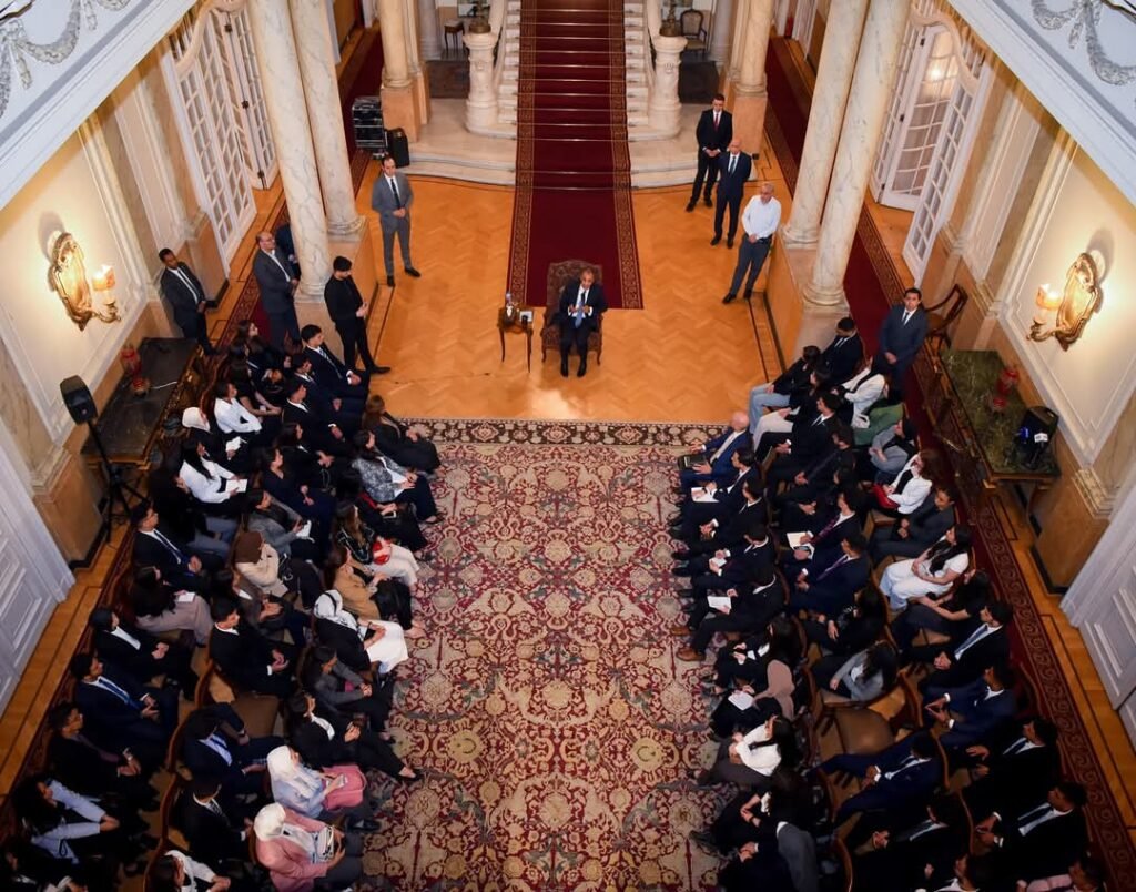 في اطار انشطة الدبلوماسية العامة لوزارة الخارجية والهجرة، واستكمالا لجهود الوزارة لتعزيز التواصل مع الطلاب والشباب، اجري د.بدر عبد العاطي وزير الخارجية مساء الثلاثاء 22 أبريل 2025 لقاء تفاعليا مع 100 طالب وطالبة من الجامعات المصرية الحكومية والخاصة المختلفة، من بينها جامعة القاهرة، وجامعة عين شمس، وجامعة الاسكندرية، والجامعة الأمريكية بالقاهرة، والجامعة البريطانية، والجامعة الفرنسية، والجامعة الكندية، والجامعة الألمانية، وجامعة باديا، وجامعة بدر.