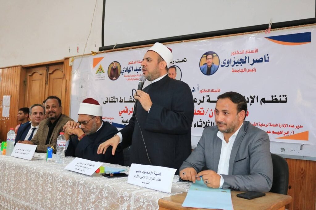 وفي كلمته ذكر فضيلة الدكتور عبد الفتاح العواري، عضو مجمع البحوث الإسلامية، أن الحرب على “المفاهيم الدينية” في الفضاء الرقمي تتم بآلية متقنة، وهذه الحرب تتجاوز مجرد النقد إلى حملات ممنهجة تهدف إلى تفكيك المفاهيم التي تشكل الهوية الإسلامية، مثل مفاهيم العرض والشرف والحشمة، حيث تتم تشويهها رقميًا عبر وسمها بالرجعية أو التخلف، وتقديم التحلل الأخلاقي باسم “الحرية المطلقة” كبديل عصري وجذاب، مما يتطلب من الشباب وعيًا عميقًا بالفرق بين الحرية المسؤولة والفوضى الأخلاقية التي يروج لها التضليل الرقمي.