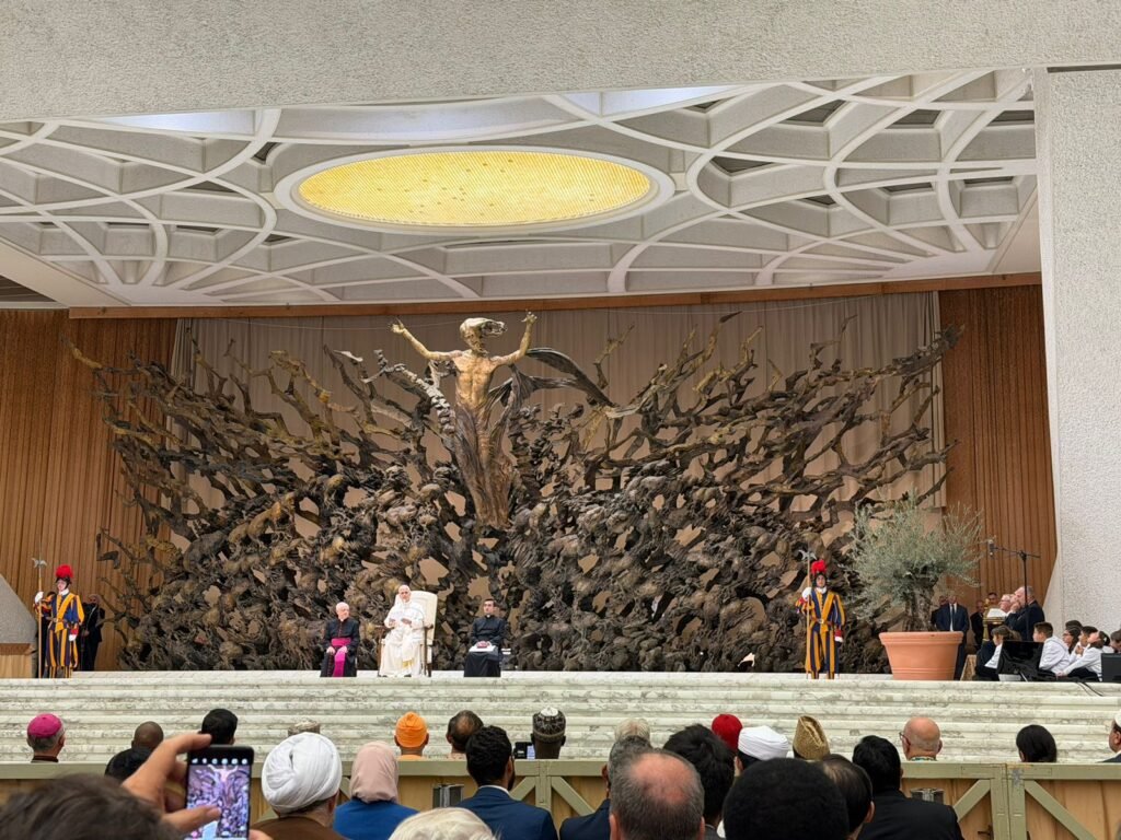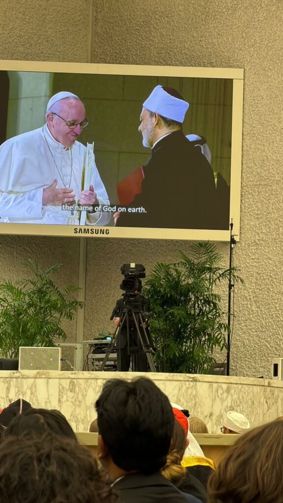 في إطار الجهود المستمرة للأزهر الشريف لتعزيز الحوار بين أتباع الأديان ونشر قيم التسامح والتعايش، شاركت د. ريهام سلامة، مدير مرصد الأزهر لمكافحة التطرف، في فعاليات الاحتفال بالذكرى الستين للوثيقة التاريخية “نوسترا أيتاتا” في الفاتيكان، وذلك بدعوة كريمة من دكاستوريا للحوار بين الأديان، ودعم من معهد الآباء الدومينيكان انطلاقًا من الشراكة بين المرصد والمعهد ضمن الجهود المستدامة لتعزيز الحوار الإنساني والديني بين أتباع الديانات والثقافات.