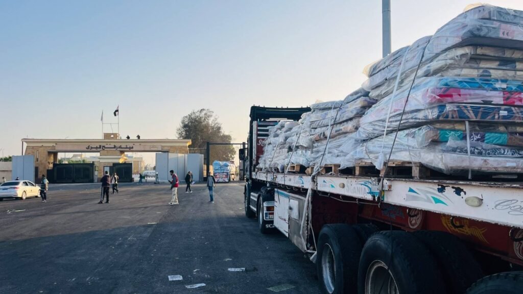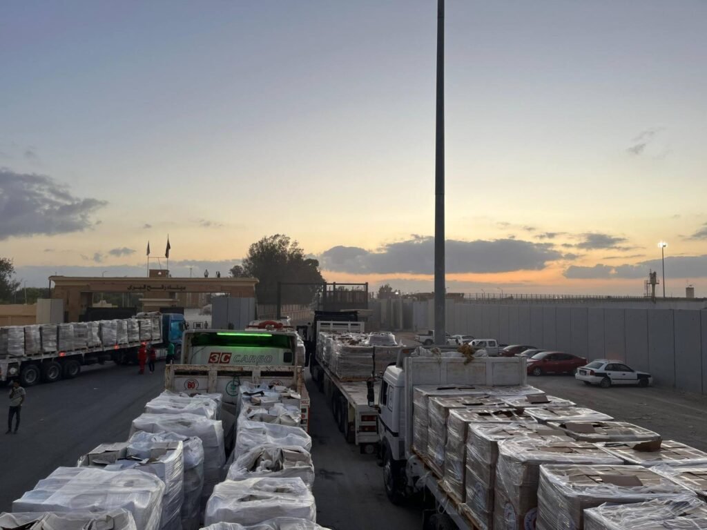 وصرح مصدر مسئول في ميناء رفح البري اليوم بأن الشاحنات ضمن قافلة “زاد العزة من مصر إلى غزة ” الـ78 تحمل مساعدات إنسانية متنوعة إلى الفلسطينيين بقطاع غزة .. مشيرا إلى أن الشاحنات تخضع للتفتيش من قبل سلطات الاحتلال الإسرائيلي قبل أن تدخل إلى القطاع.
