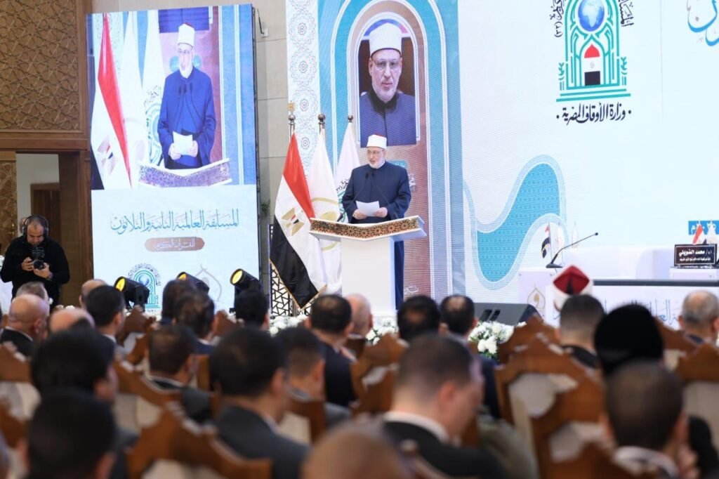وقال فضيلته إن لقاء اليوم اجتماع على مائدة القرآن الكريم، النور الذي لا يخبو ضياؤه، والهدى الذي لا تضل سبله، والكتاب الذي لا تنقضي عجائبه وحكمه، فهو حبل الله المتين، وهو الذكر الحكيم، وهو الصراط المستقيم، وهو اجتماع في مصر-بلد الأزهر الشريف- وفي ضيافة وزارة الأوقاف المصرية لافتتاح هذه المسابقة العالمية يجسد قيام الدولة المصرية بدورها الريادي في خدمة كتاب الله تعالى، ويؤكد عنايتها الدائمة بحملته وحفظته، ورعايتها لكل ما يتصل به تعليما وتجويدا وفهما وتدبرا، كما تثبت المسابقة في دوراتها المتتالية، أن مصر تملك رؤية راسخة تجمع بين أصالة التراث ومعطيات التقدم، وتسعى إلى تخريج جيل قادر على حمل رسالة القرآن في العالم كله، جيل يجمع بين دقة الإتقان وسمو القيم ونبل الأخلاق.
