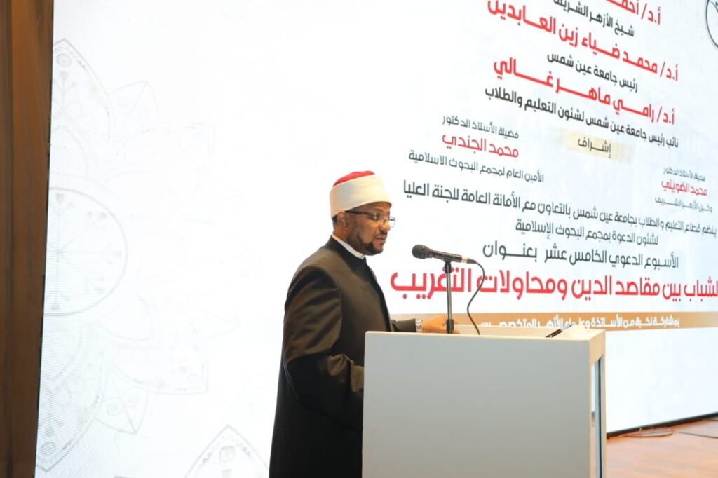 قال د. محمد الجندي، في كلمته: إنَّ الأزهر الشريف بقيادة فضيلة الإمام الأكبر أ. د. أحمد الطيب، يمضي بثبات في بناء وعي ناضج لدى الشباب، يرتكز على مقاصد الدِّين التي تحفظ العقل والنفس، وتحمي أبناءنا من محاولات الاستقطاب نحو الانحراف السلوكي، أو الإلحاد، أو الوقوع في براثن الإدمان، مضيفًا أنَّ الإنسان المتزن هو الذي يحفظ قِيَمه ولا يسمح لنفسه أن تترنَّح تحت مؤثِّرات مضلِّلة تُفقده توازنه وهُويَّته.