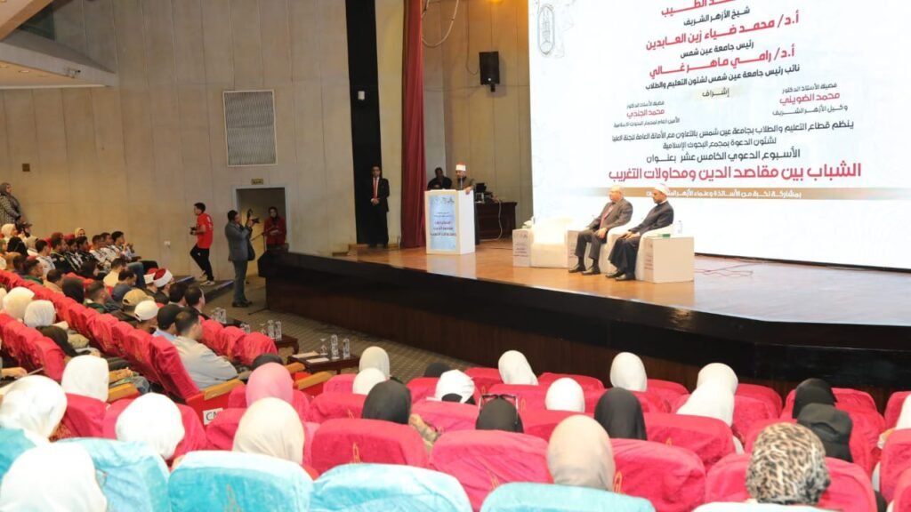 من جانبه أكد د. رامي غالي، نائب رئيس جامعة عين شمس، الدور الوطني والمجتمعي المحوري للجامعة، وأن تعاونها مع الأزهر الشريف ينبع من رؤية واضحة في بناء شخصية الطلاب بناءً متكاملاً يقوم على أسس علمية، ويسهم بفاعلية في تنمية وحماية الشباب ووقايتهم من التيارات والأفكار الهدامة والمضللة، كما أن تنظيم “الأسبوع الدعوي” في جامعة عين شمس يعد فرصة حقيقية لتمكين الطلاب من التمييز بين الصحيح والسقيم، لأن المعرفة المستنيرة والفهم العميق هما الطريق الأمثل لبناء جيل واع ومحصن، قادر على فهم واقعه وتحدياته والمساهمة في بناء مستقبله.