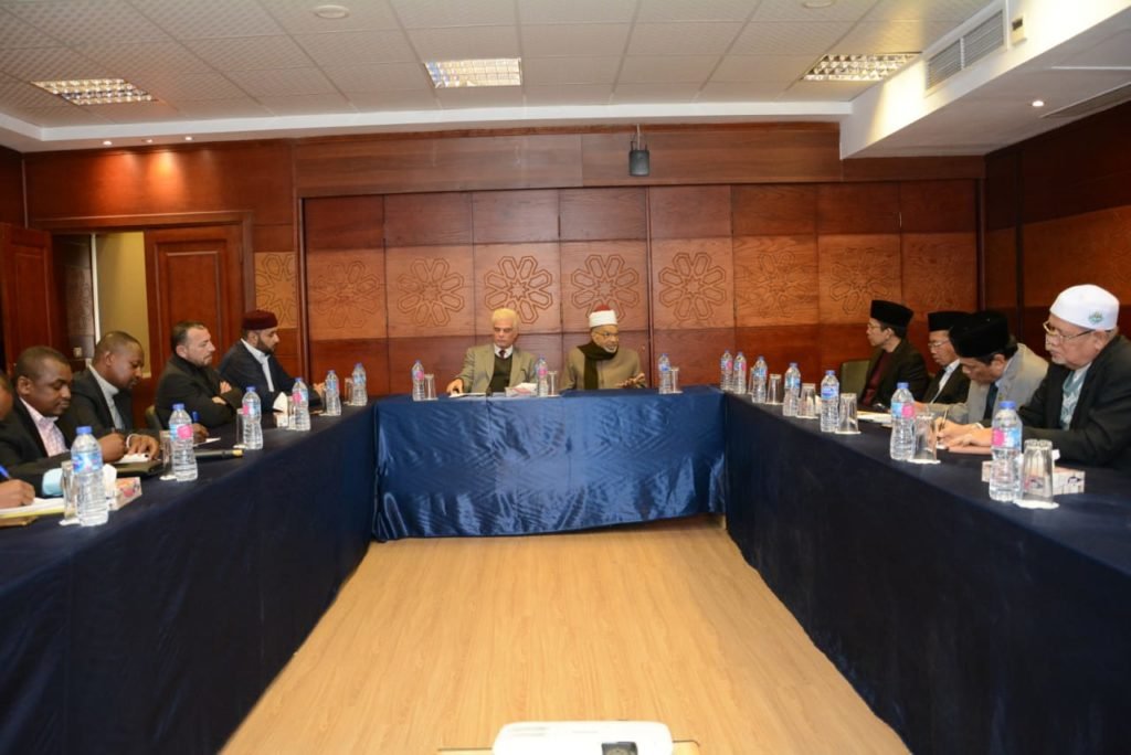 ناقش اجتماع ضم قيادات المنظمة العالمية لخريجى الأزهر ورؤساء فروع المنظمة بالخارج، الاستراتيجية الجديدة والأنشطة المقترحة لنشر الفكر الأزهرى الوسطى ومواجهة الأفكار المتطرفة والمنحرفة فى مختلف دول العالم.